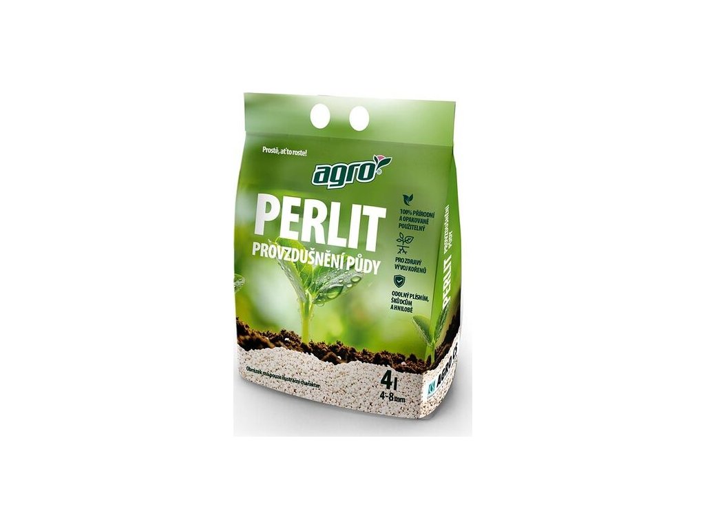 AGRO Perlit je přírodní materiál vhodný pro výsev a zakořeňování mladých rostlin. Perlit provzdušňuje substráty, stabilizuje vlhkost v půdě, zlepšuje využívání hnojiv a přispívá k dobré kondici pěstovaných rostlin. Odolnost perlitu proti vlhku, mrazu, mikroorganismům a plísním je výhodou při použití s mladými rostlinami.