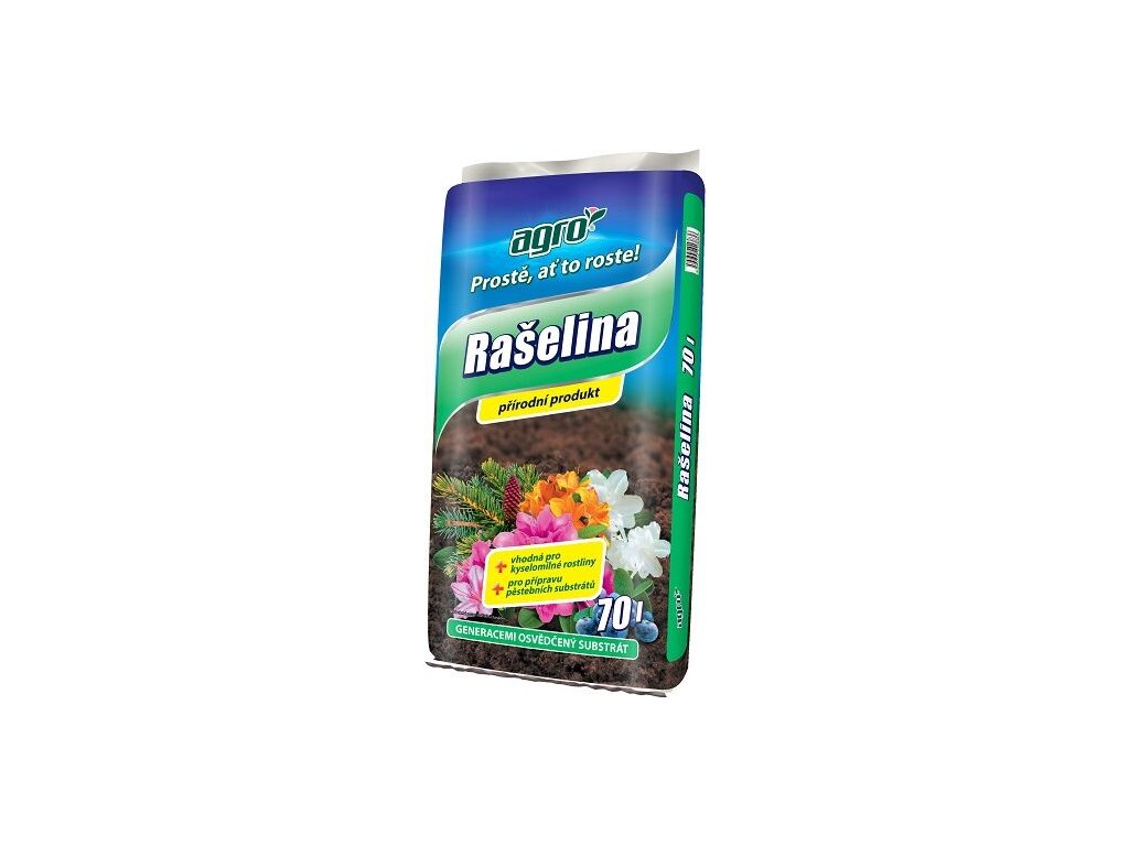AGRO Rašelina je vysoce kvalitní čistě přírodní organická hmota bez přísad, upravená pouze tříděním na střední zrnitost. Podporuje dobrý růst rostlin, bohatou tvorbu kořenů a květů. Používá se na všeobecné zlepšení zahradní půdy, k jejímu prokypření, vylehčení, provzdušnění a úpravě pH. Využití najde v zemědělství, při výsadbě stromových školek a v zahradnictví.